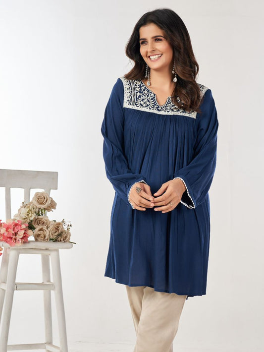Elegant Faux Blooming Kurti Plazo Set with Embroidered Dupatta
