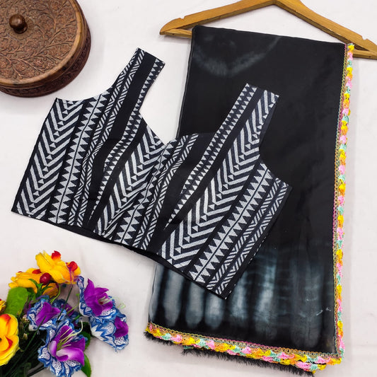 Black Casual Cotton One-Piece Tunic with Timeless Prints